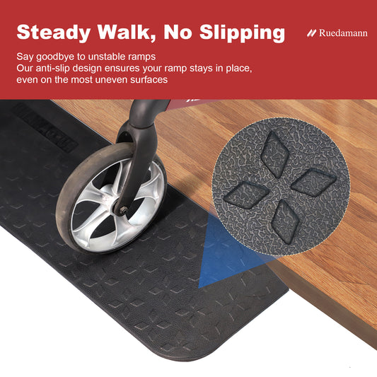 Ruedamann Threshold Ramp, Durable Solid Rubber with 2200lbs Load Capacity, Non-Skid and Anti-Slip Surface, Wheelchair Ramp for Doorways and Bathroom