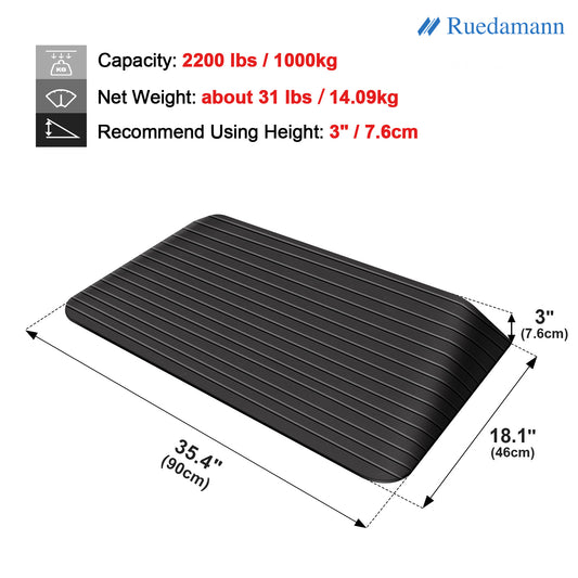 Ruedamann 3" Rise Rubber Threshold Ramp, 35.4" Wide Wheelchair Ramp, 2200 Lbs Capacity, Ramp with Non-Slip Surface, Door Ramp for Wheelchairs