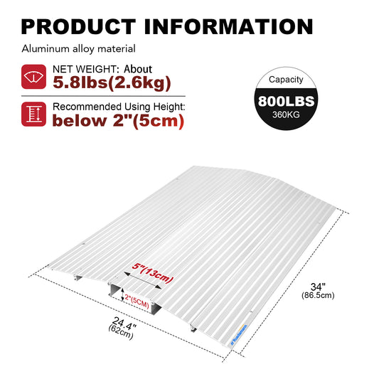 Ruedamann Bridge Threshold Ramp, 34" Wide Modular Aluminum Entry Ramp, Adjustable Wheelchair Ramp, 800Lbs Capacity, Transition Door Ramp for Sliding Door, Patio Door, Scooters, Power Chairs