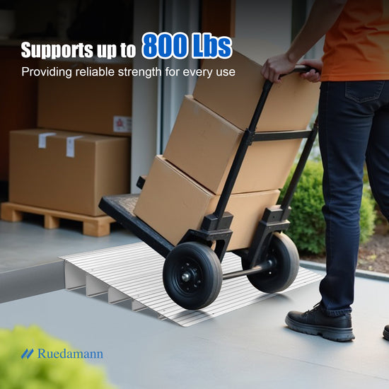【Durable Aluminum Threshold Ramp】Made of strong anodized aluminum, our threshold ramp supports up to 800 lbs without rusting or scratching surfaces. Suitable for manual and electric wheelchairs, walkers, mobility scooters, carts, and strollers, perfect for both indoor and outdoor use.