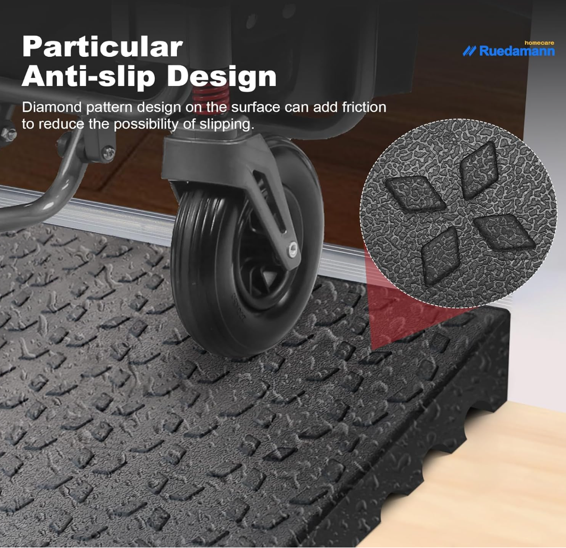 Ruedamann 3" Rise Threshold Ramps for Doorways, Sturdy Rubber Threshold Ramp, Non-Slip Ramp for Wheelchair for Home, Adjustable and Cuttable for Wheelchairs, Scooters, Sweepers, Curbs