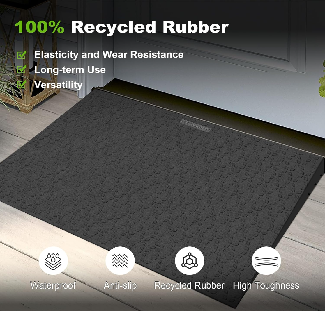 • [Durable Rubber Material] Our doorway threshold ramp is made of rubber, which is safe but a slight rubber smell. It is harmless to human body and the environment. If you are concerned about the smell, we suggest that you can leave the door ramp outdoors for more than 3 days for ventilation.