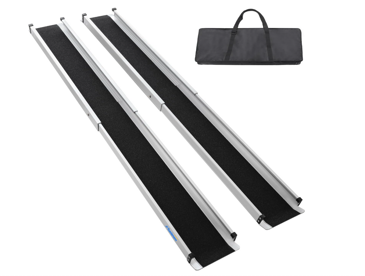 【Compact, Easy to Carry】This portable ramp for wheelchair comes with a carrying bag for easy storage and transport. Its compact, telescoping design makes it convenient to store in car trunks or tight spaces at home. It’s an ideal solution for anyone needing a wheelchair ramp for home entrance, portable ramps for wheelchairs, or wheelchair ramps for steps