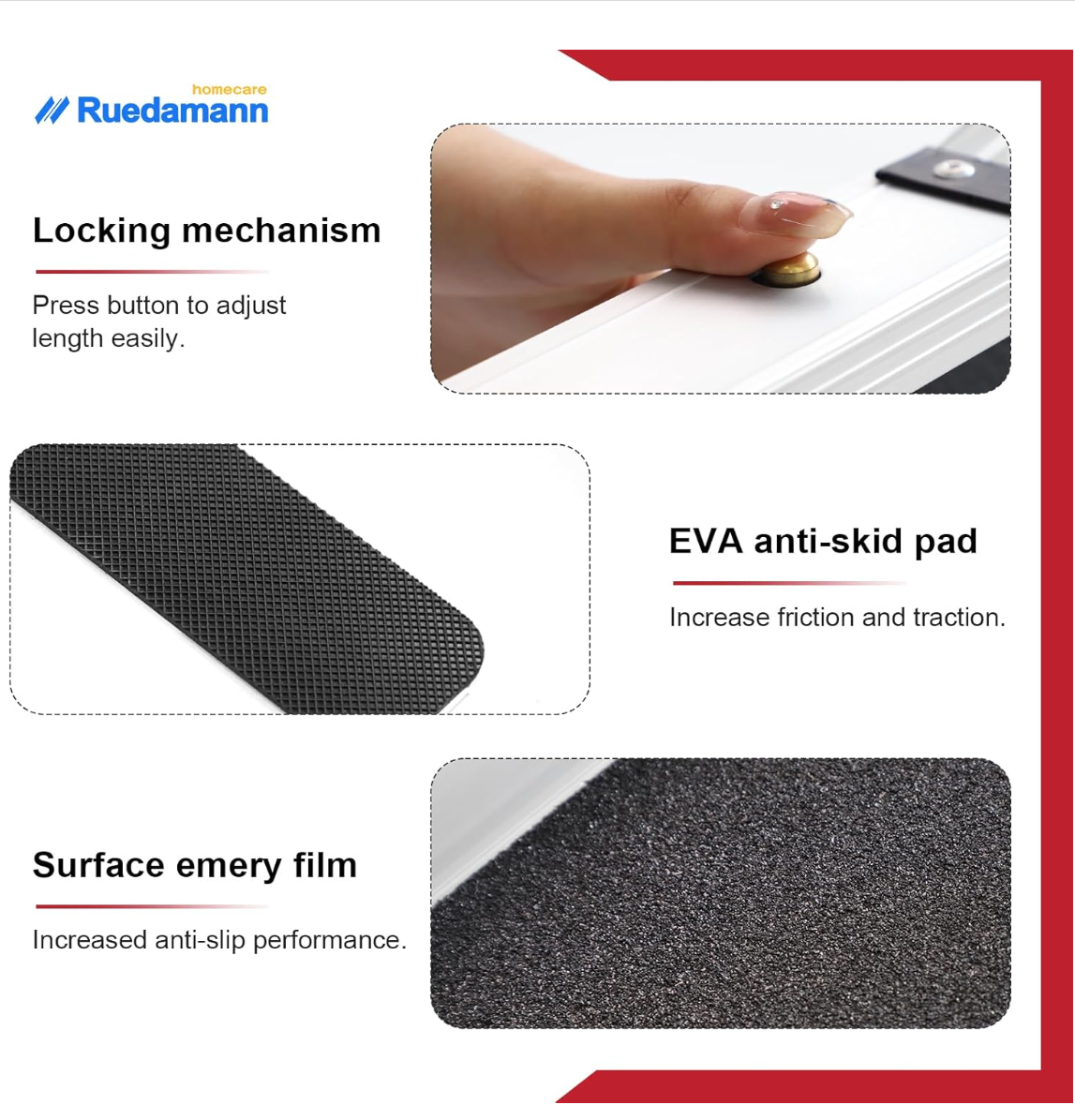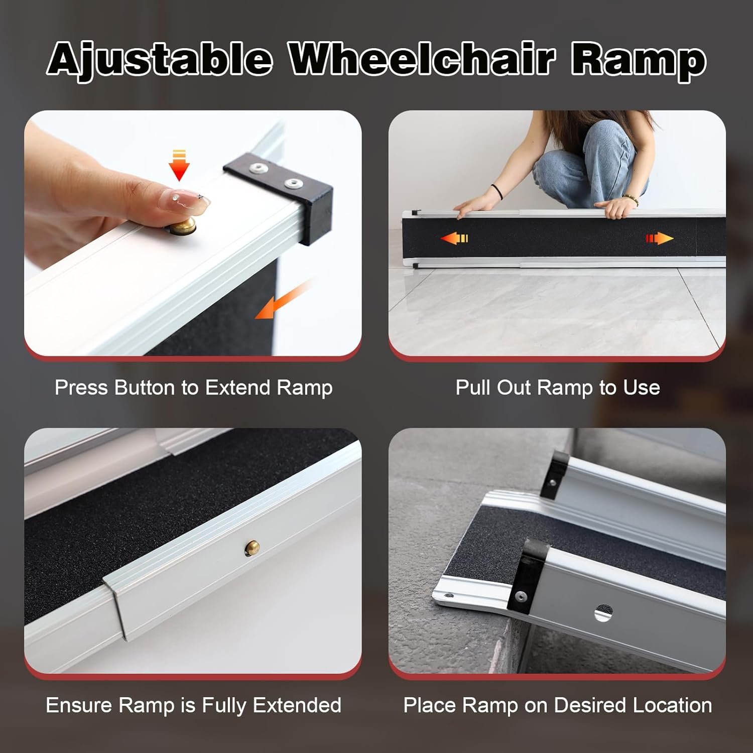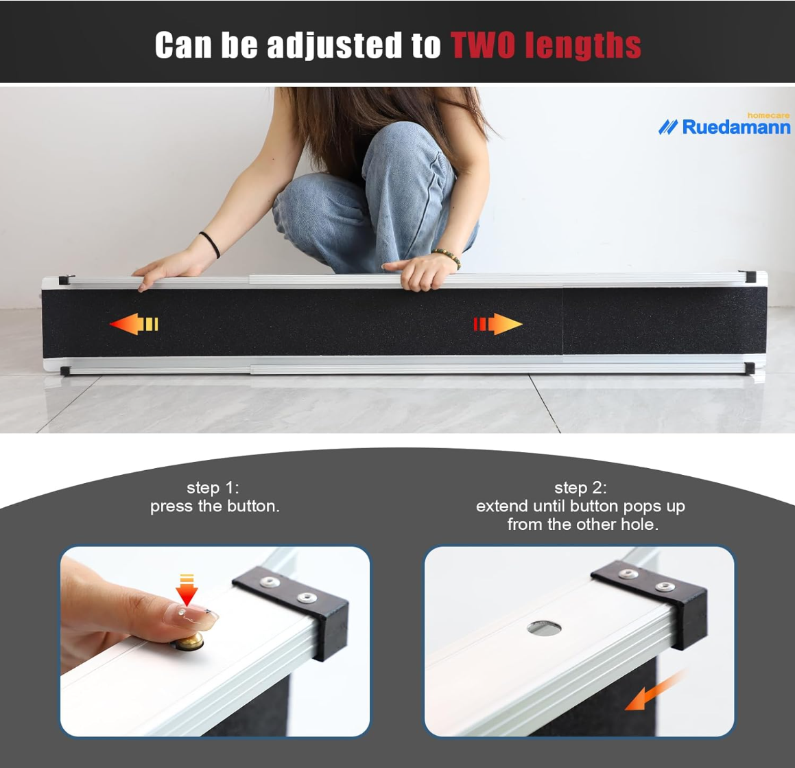 【Non-Slip Surface Design for Safety】The surface features a non-slip textured coating for better traction. The top and bottom extendable plates are fitted with rubber non-slip pads, reducing the risk of slipping in wet conditions. It’s safe to use as a temporary ramp for wheelchair and suitable for wheelchair ramps for doorways or wheelchair ramps for home