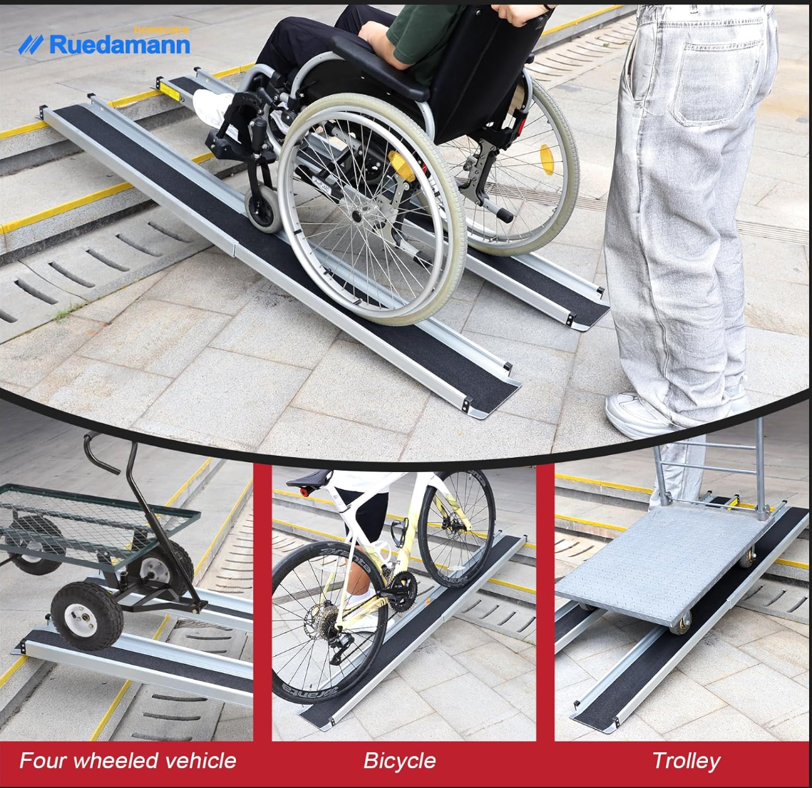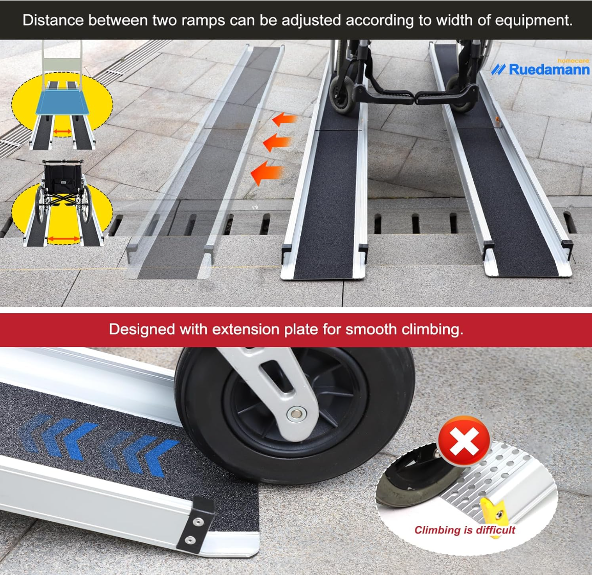Ruedamann Wheelchair Ramp 6FT Telescoping Wheelchair Ramps for Home Steps Portable Non-Skid Ramps for Wheelchairs for Home Adjustable Aluminum Wheelchair Ramp Storage Bag (2 Pcs)