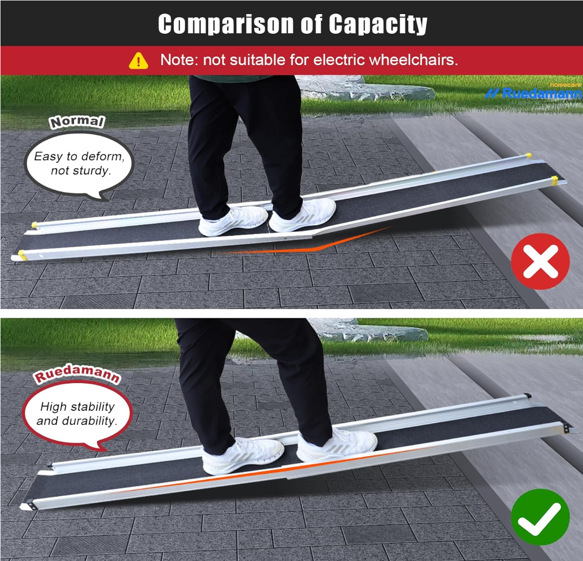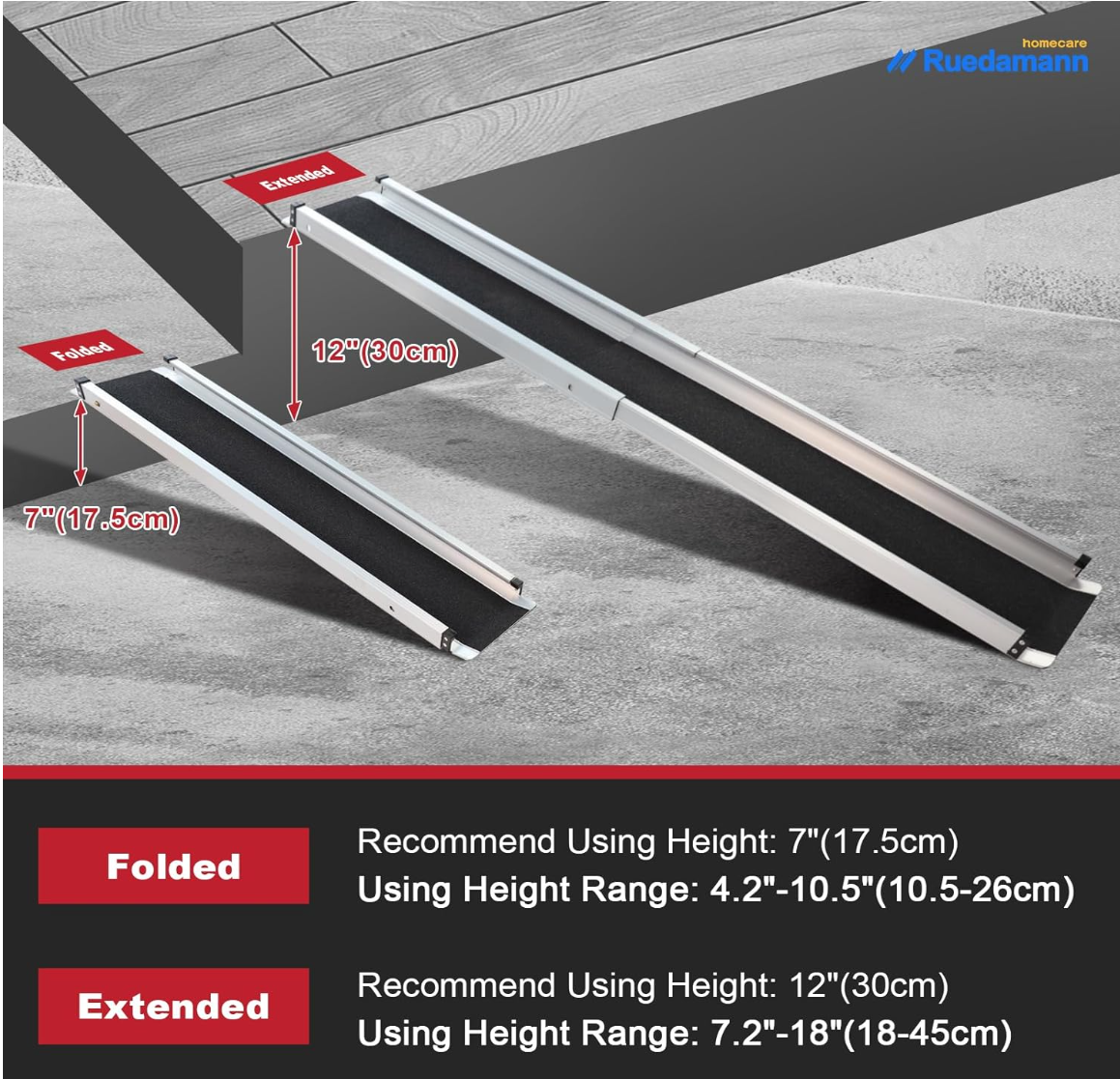 【Warm Tips】Before purchasing, please ensure you check the required ramp length and step height to select the right size. Avoid exceeding the weight capacity for safe use of your doorway wheelchair ramp or wheelchair ramps for steps