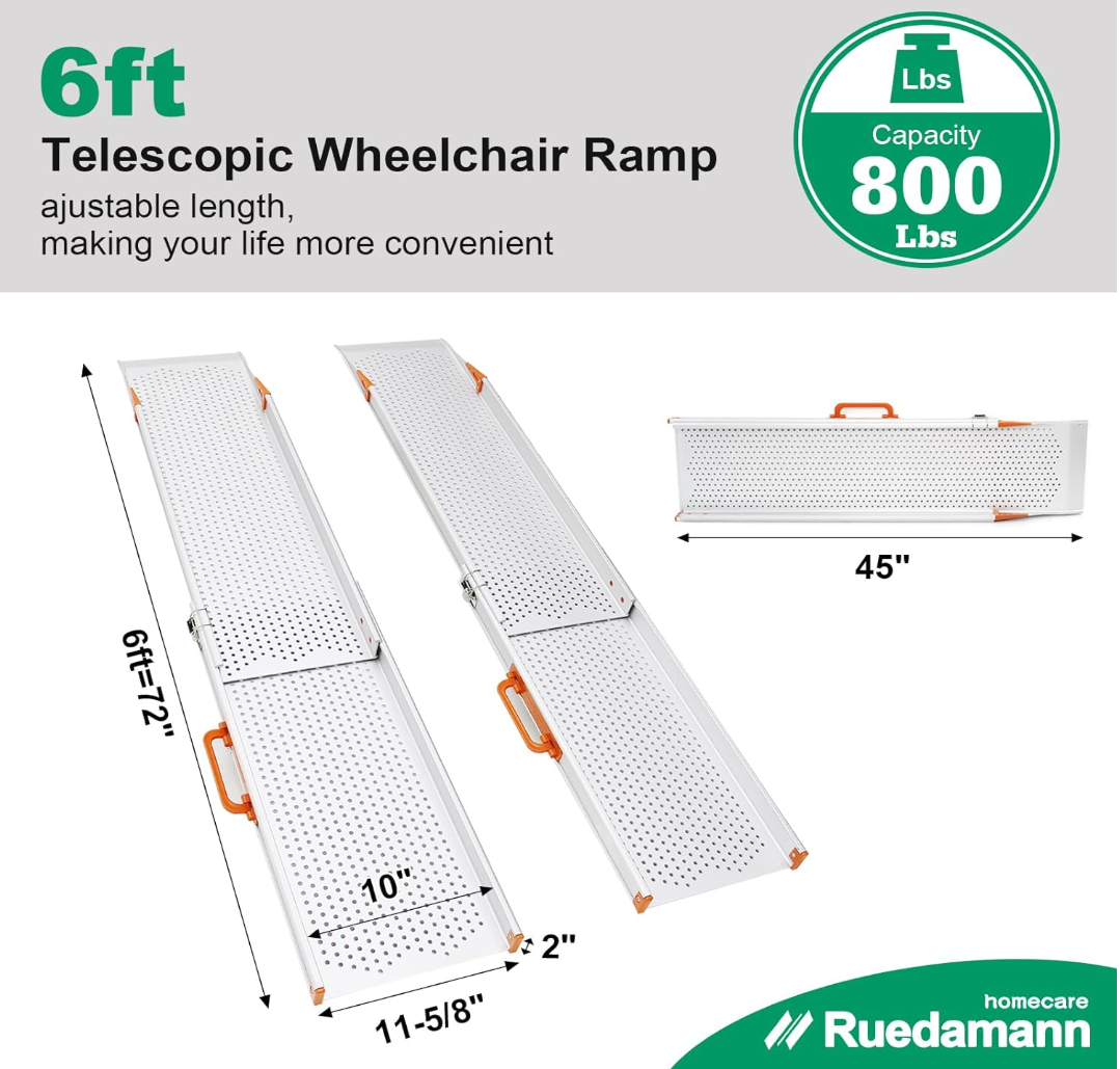 Ruedamann Wheelchair Ramp, Adjustable Wheelchair Ramp for Home Steps,Ramps for Electric & Manual Wheelchairs, Scooters, Bikes