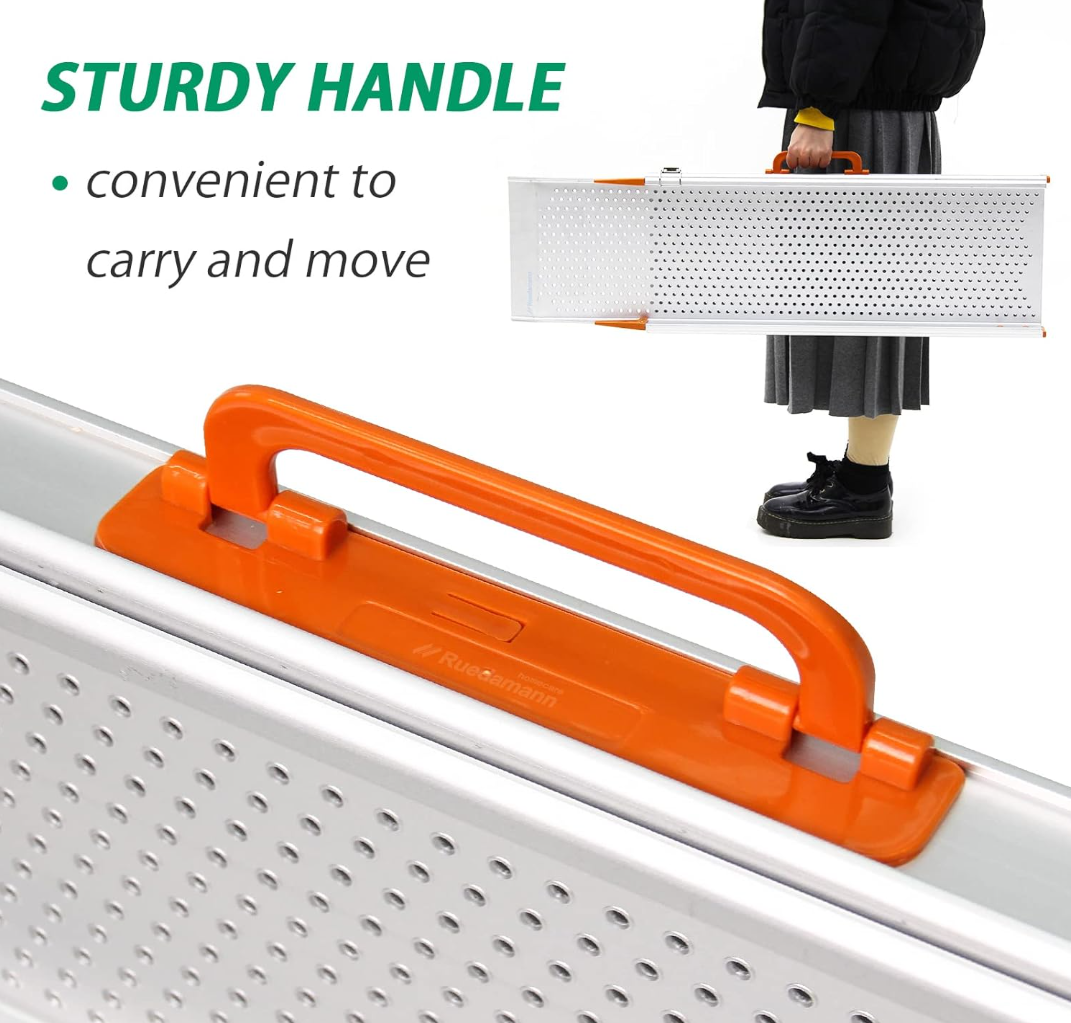 【Lightweight & Easy to Move】While built to be durable, the ramp for wheelchair is lightweight and easy to carry. Equipped with a convenient handle, it is easy to store in your car trunk or lean against a wall, making it perfect for travel and use