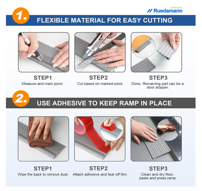 • 【Threshold Ramp with Non-Slip Surface】: Ruedamann ramp features threading grooves on the bottom, preventing damage to wires and ensuring the ramp stays in place. Its textured, non-slip surface offers superior traction, even in wet conditions, reducing the risk of slipping. Ideal for threshold ramps, ramp for wheelchair, and threshold ramp for wheelchairs